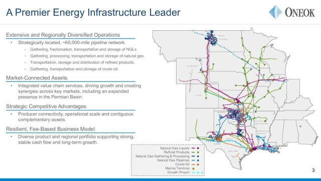 ONEOK는 북미 전역에 걸쳐 방대한 에너지 인프라 네트워크를 운영하며 다각화된 수익 구조를 자랑합니다.
